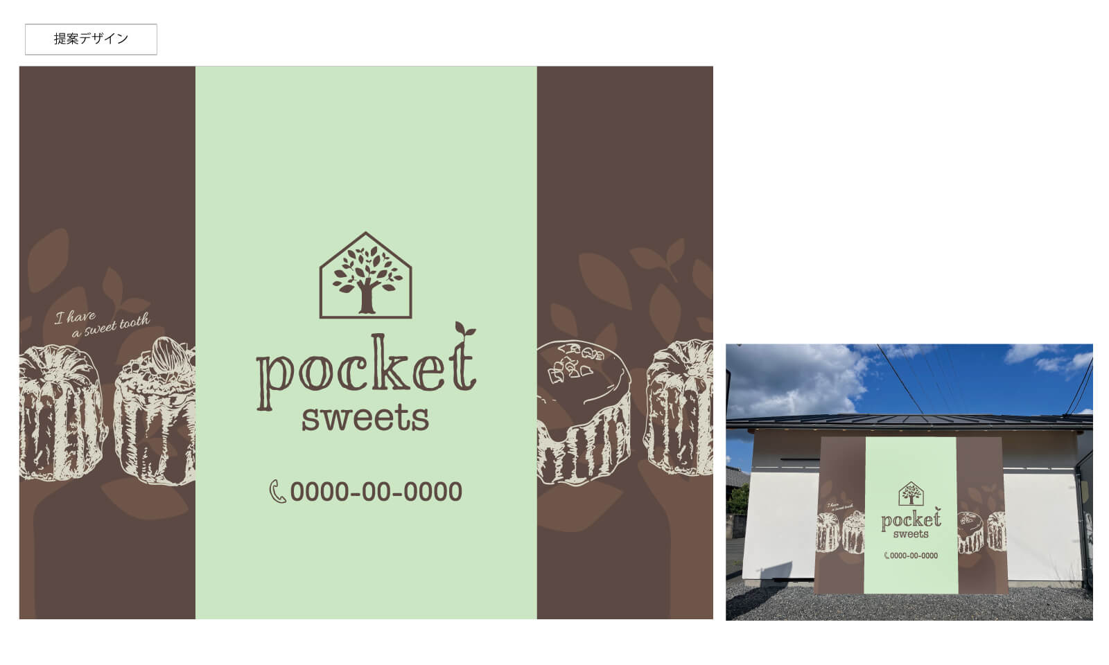 愛知県春日井市のカフェ&ランチぽけっと様が新しくOPENされた菓子店舗「スイーツぽけっと」の壁面看板をデザイン・施工させて頂きます。